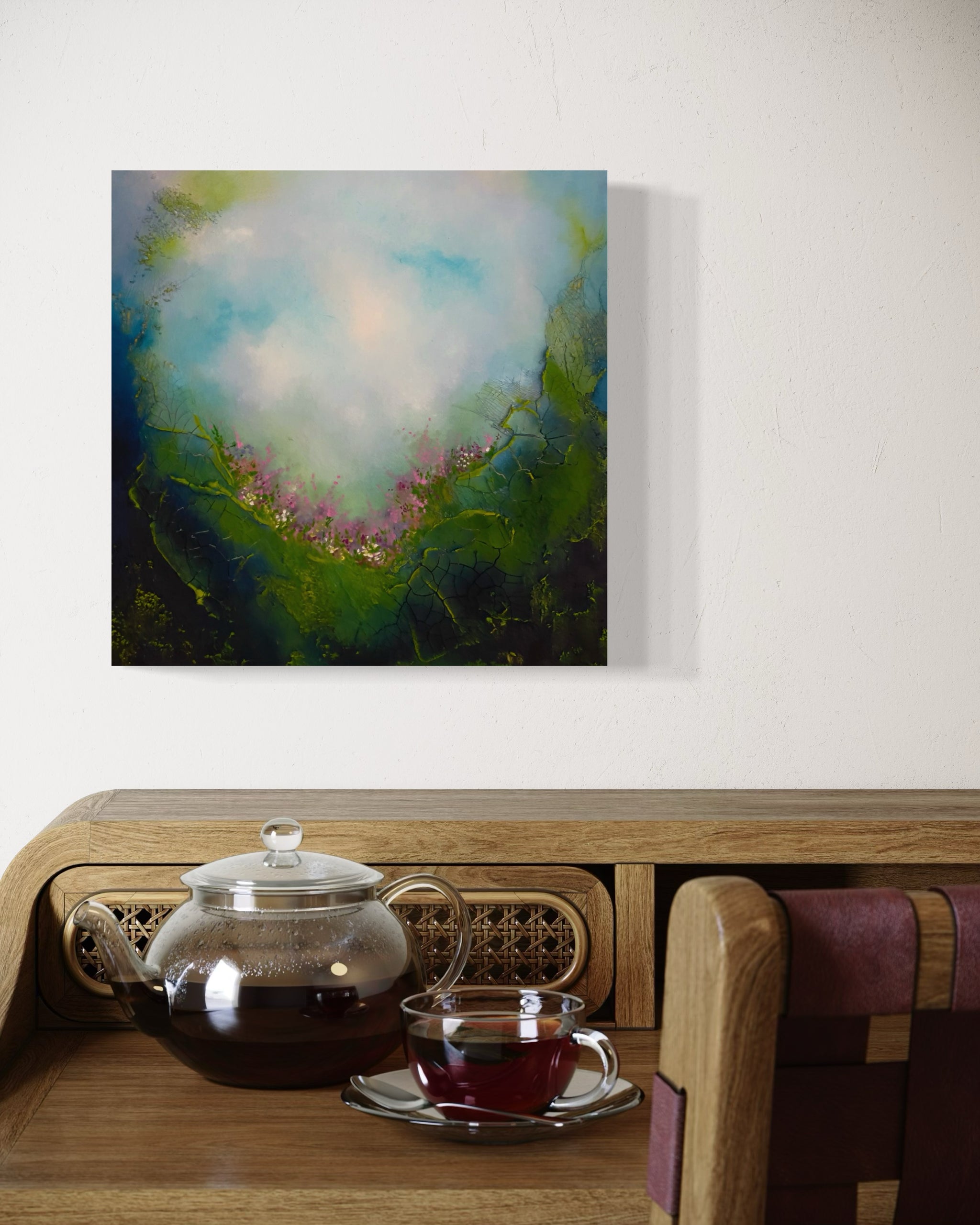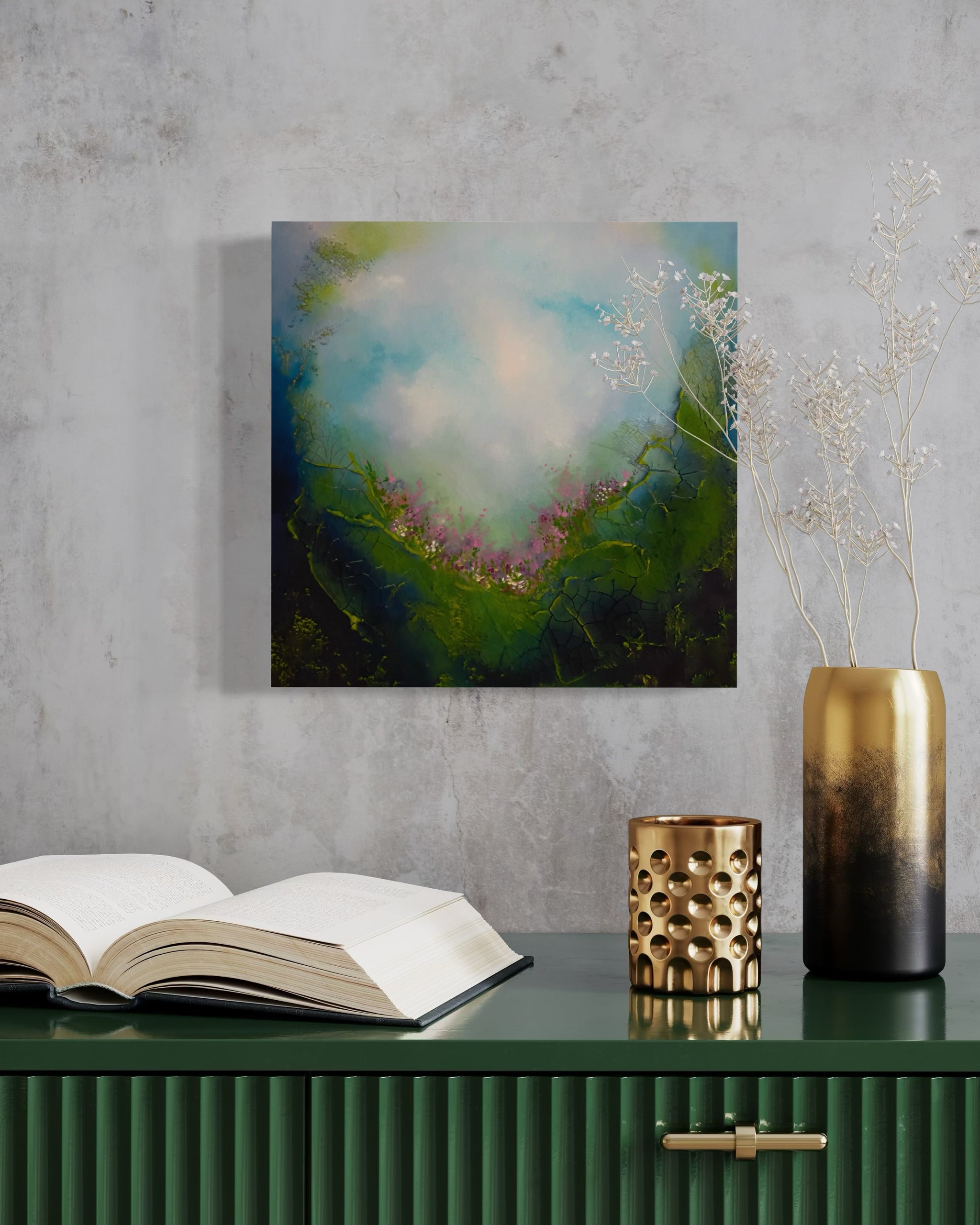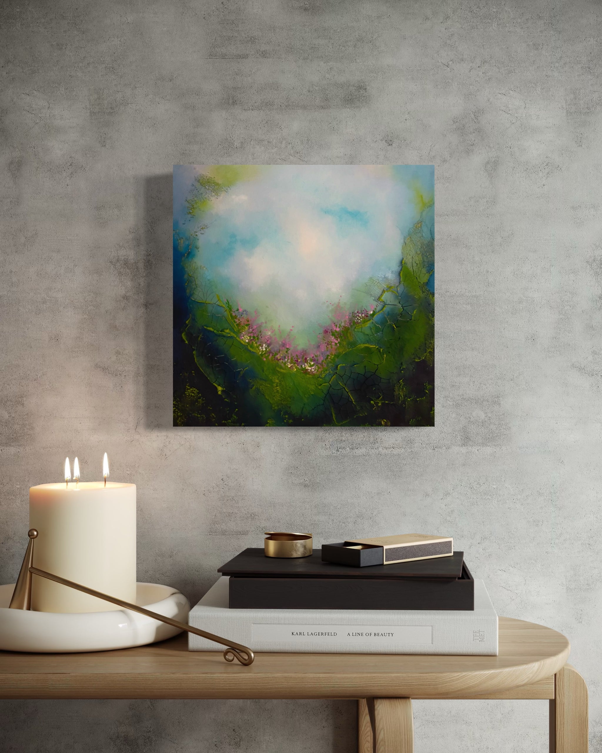 This painting is a reflection of the inner landscape we all carry within us. Each of us holds a secret garden, a deeply personal space filled with inspiration, dreams, and silent yearnings that often go unspoken. It is a place of possibility, where ideas take root before they are fully formed and where the truest parts of ourselves quietly wait to be acknowledged.