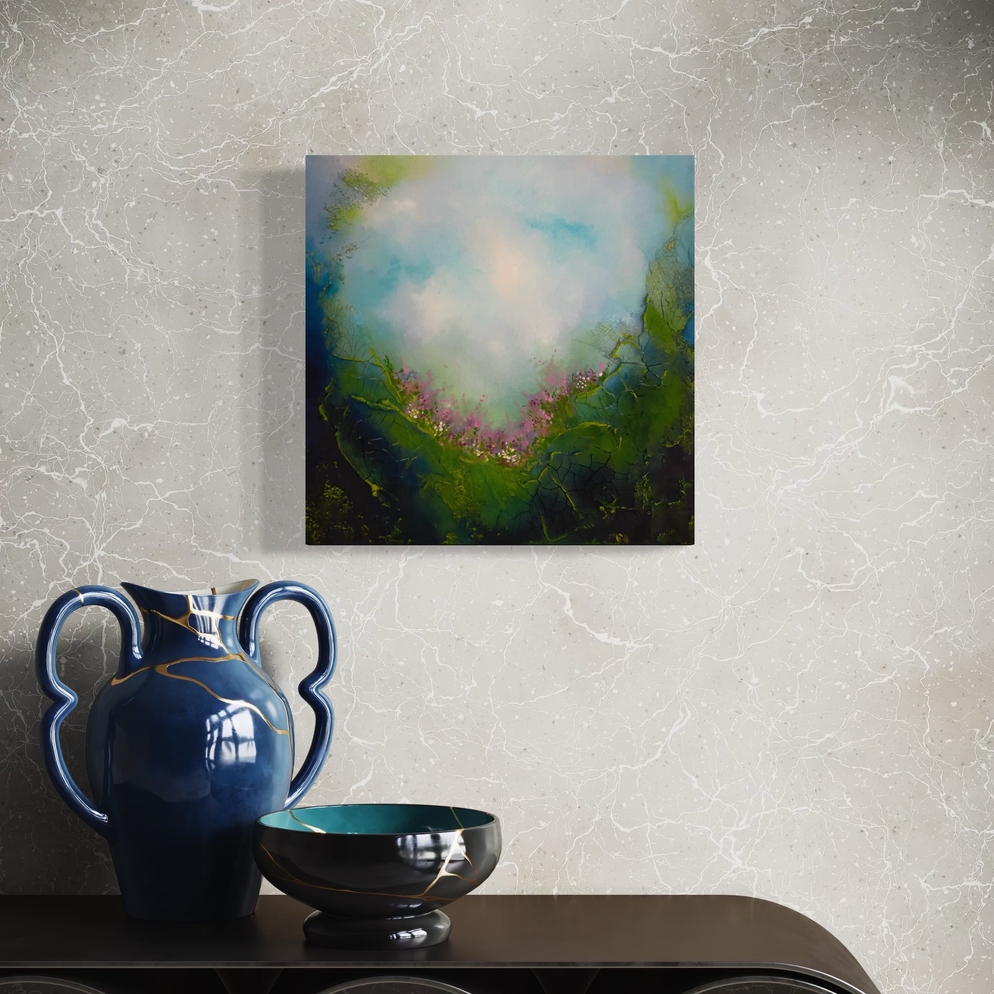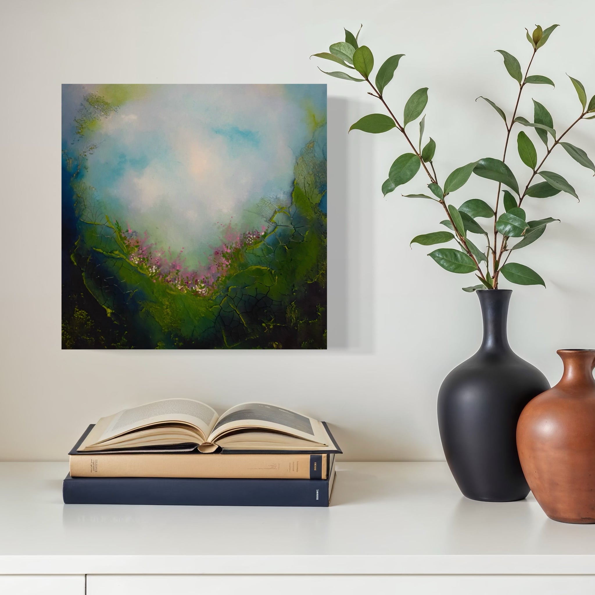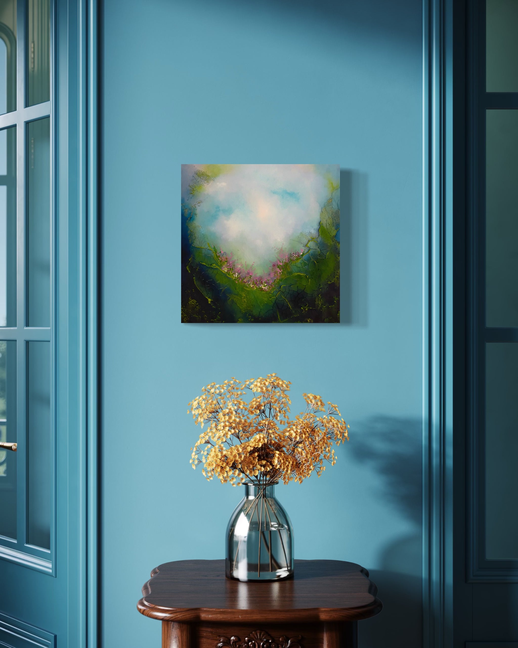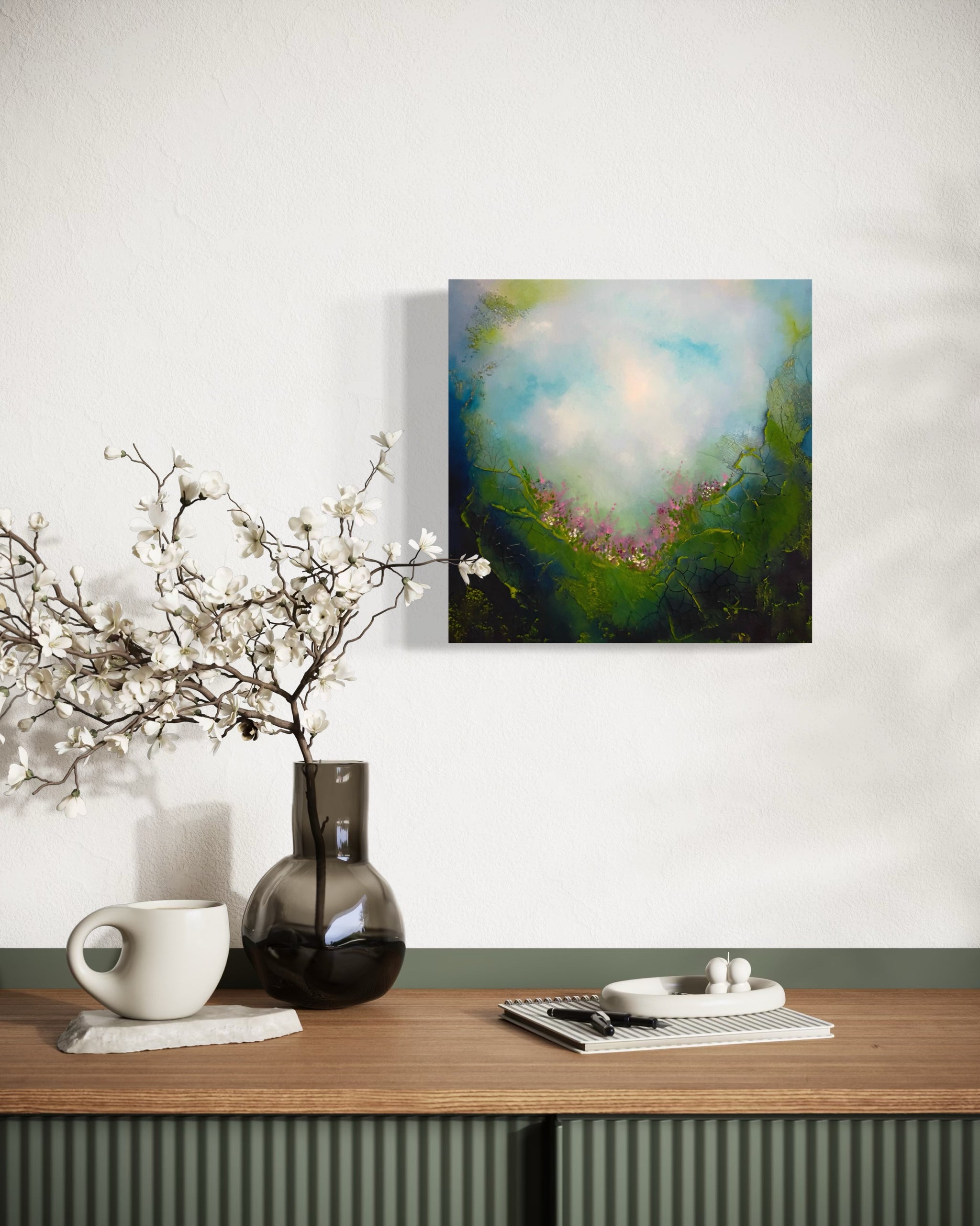 This painting is a reflection of the inner landscape we all carry within us. Each of us holds a secret garden, a deeply personal space filled with inspiration, dreams, and silent yearnings that often go unspoken. It is a place of possibility, where ideas take root before they are fully formed and where the truest parts of ourselves quietly wait to be acknowledged.